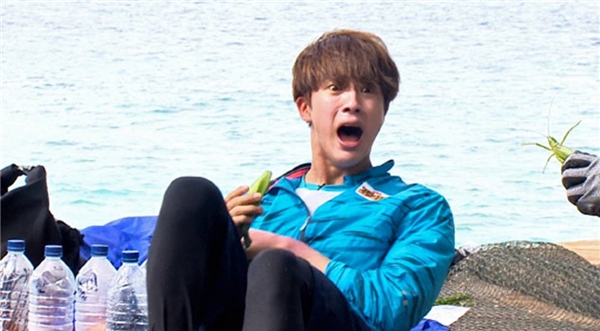 Gương mặt hoảng hốt và sợ hãi khi bị trêu bằng châu chấu đạp đổ hoàn toàn hình tượng của Jin.