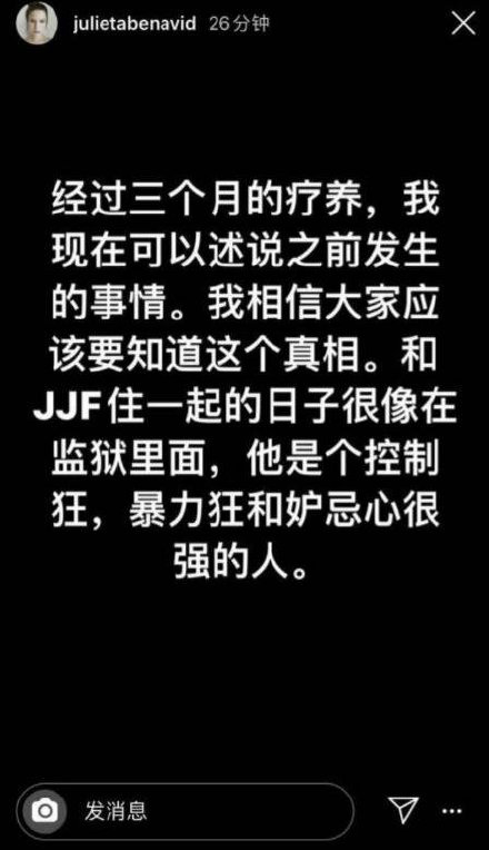Hôm qua (26/11), bạn gái người nước ngoài Julieta của Tưởng Kình Phu đăng bài lên mạng xã hội tiết lộ bị bạn trai dùng bạo lực. Cô cho biết ở với Tưởng Kình Phu giống như đang trong ngục tù, dục vọng khống chế của anh ta rất mạnh, là một người thích sử dụng bạo lực và có lòng đố kỵ cao.