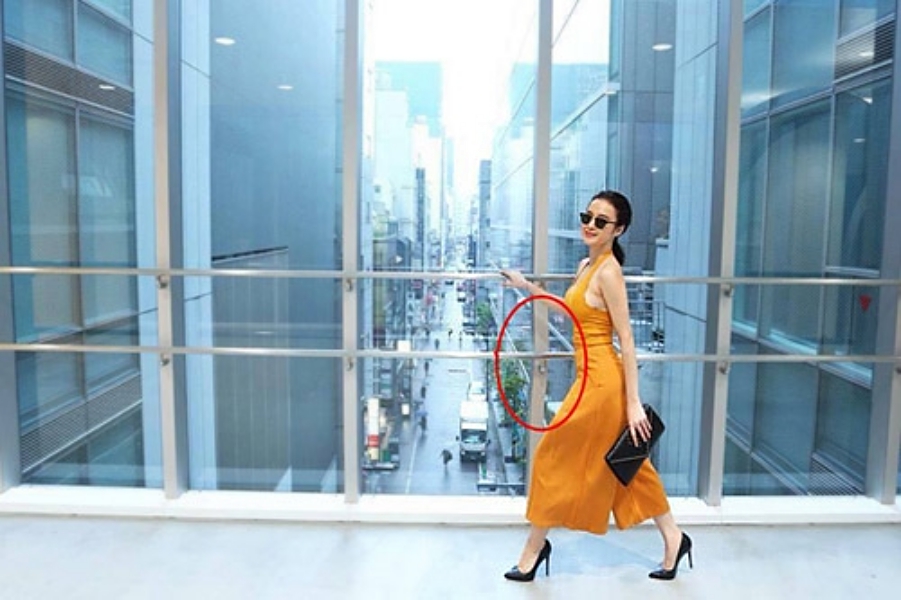Giống như Kỳ Duyên, Diệp Lâm Anh, Angela Phương Trinh ngày xưa khá ưa chuộng những phần mềm chỉnh ảnh tiện lợi trên điện thoại. Nhưng cũng chính các ứng dụng này đã tố cáo “bà mẹ nhí” sửa vòng 3 khiến khung cửa phía sau biến dạng.