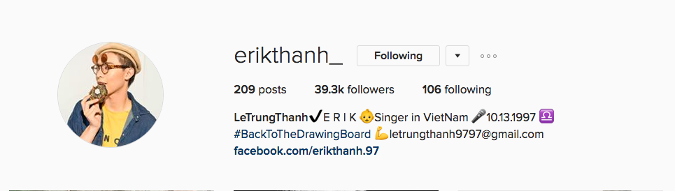 Instagram cũng đổi lại thành erikthanh_ và không quên để tên Erik ở profile.