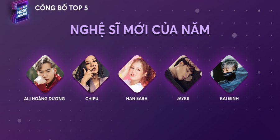Ali Hoàng Dương, Han Sara lọt Top 5 Nghệ sĩ mới của năm ZMA 2017.