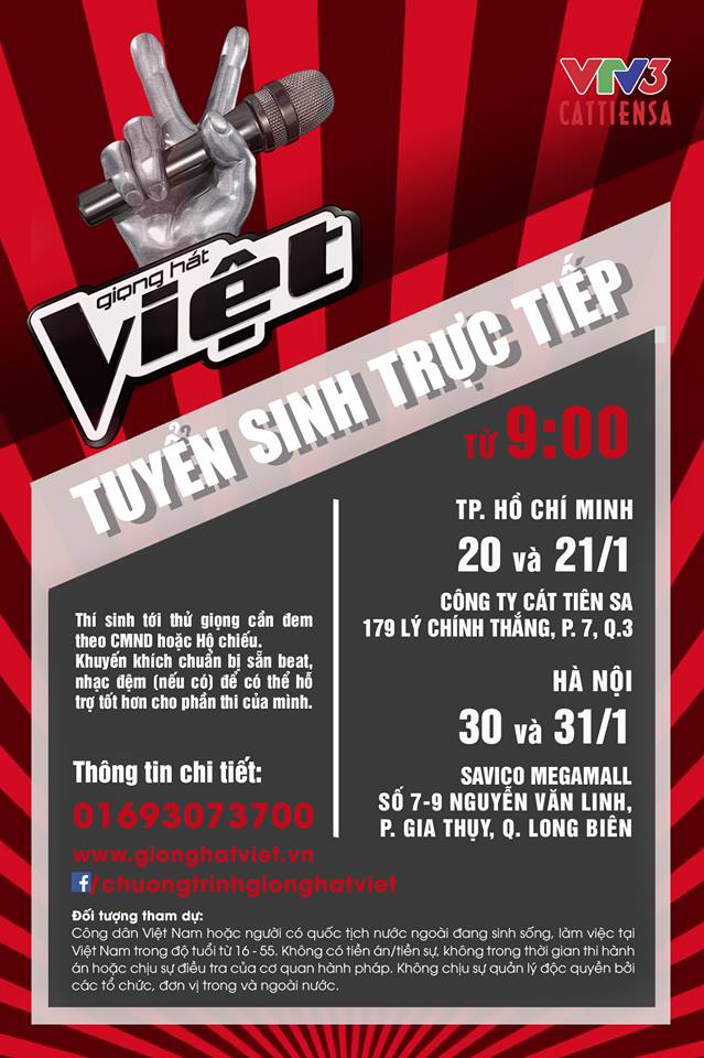 Thông tin chi tiết truy cập website www.gionghatviet.vn, fanpage Giọng hát Việt hoặc Hotline: 01693073700.