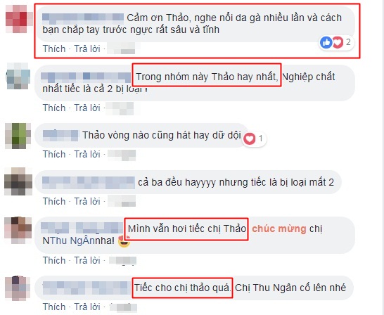 Tuy nhiên vẫn còn một chiếc vé cuối cùng để giúp Thanh Thảo tiến thẳng vào vòng chung kết bằng sự yêu thương của khán giả. Nhiều người hâm mộ cũng thể hiện sự tiếc nối với tài năn âm nhạc này và kêu gọi sự bình chọn từ mọi người.