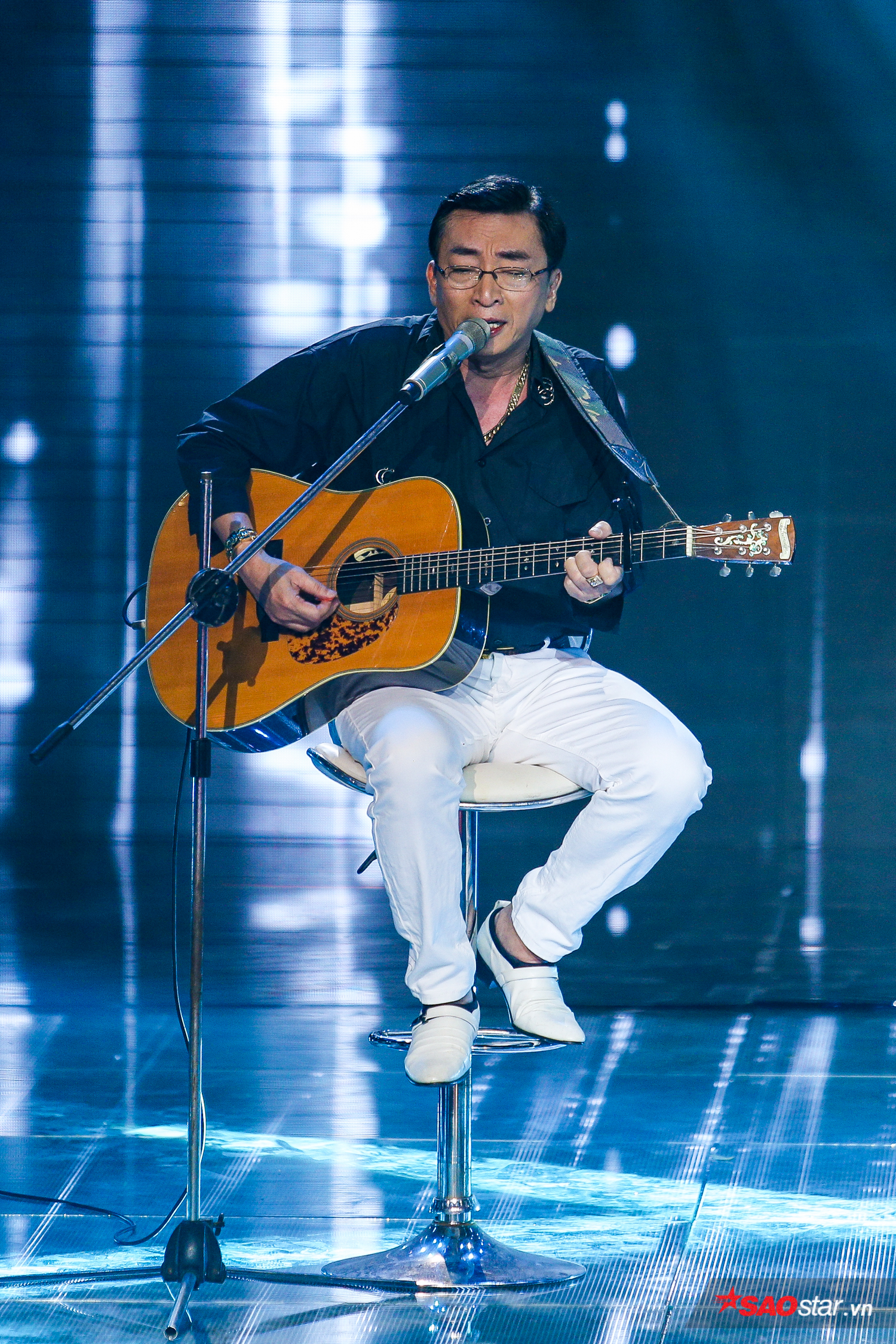 Bên dưới hàng ghế huấn luyện viên, nữ ca sĩ Giao Linh liên tục nở nụ cười và gật đầu thích thú trước sự kết hợp của cặp đôi thầy và trò HLV Đình Văn.