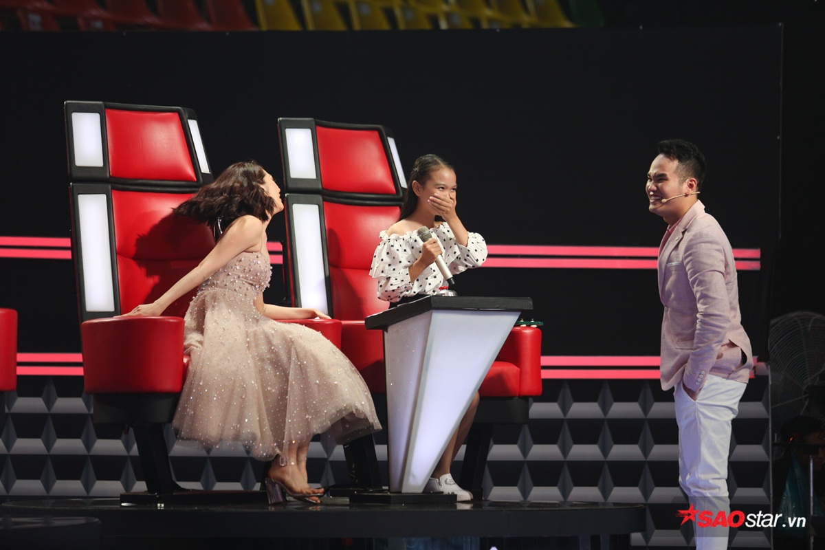 Thay cho lời khen ngợi, HLV Khắc Hưng ngay lập tức nhường chỗ ngồi trên chiếc ghế đỏ quyền lực. HLV Bảo Anh không ngần ngại đưa ra lời dự đoán: “Cô tin một ngày nào đó, con sẽ được ngồi trên chiếc ghế này. Hát hay như thế thì cho cô làm fan của con luôn nhé“.