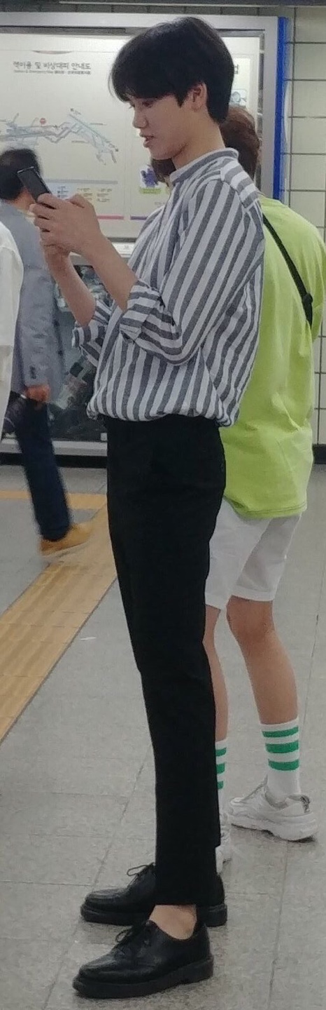 Mặc dù chỉ là những tấm hình fan chụp không hề có chỉnh sửa hay căn góc nhưng nhìn Kang Minhee vẫn rất cao với đôi chân dài miên man. Kèm theo đó, anh chàng trông cũng nổi trội hơn hẳn những người bạn của mình, thậm chí đã giang rộng chân nhưng vẫn hơn hẳn người bên cạnh nửa cái đầu.