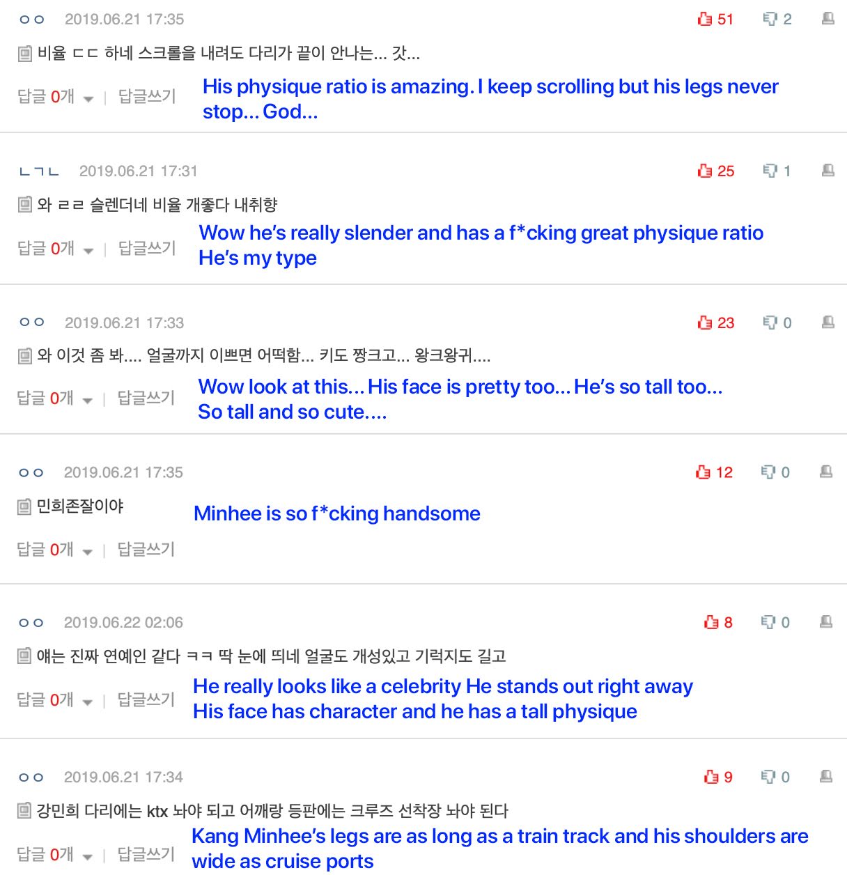 Không ai khác, thực tập sinh được nhắc tới ở đây chính là Kang Minhee từ Starship Entertainment. Gần đây, người hâm mộ bắt gặp anh chàng cùng với những thực tập sinh khác đang lang thang đi dạo tại một ga tàu điện ngầm. Lúc này, fan mới có dịp so sánh chiều cao và phát hiện ra vóc dáng chuẩn chân dài đáng mơ ước của Kang Minhee.