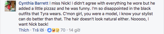 “Tôi nhớ Nick!… Tôi rất thất vọng với bộ váy đen đó của Tyra. Thôi nào, cô là người mẫu cơ mà! Tôi biết là stylist của bạn có thể làm tốt hơn thế. Mái tóc trông cũng không tự nhiên nữa…”