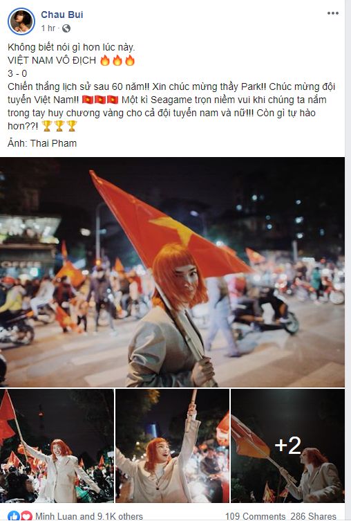 Các sao Việt cũng không nằm ngoài không khí chung. Tất cả đã đồng loạt gửi lời chúc mừng dành cho các chàng trai trẻ của đội tuyển U22 Việt Nam.