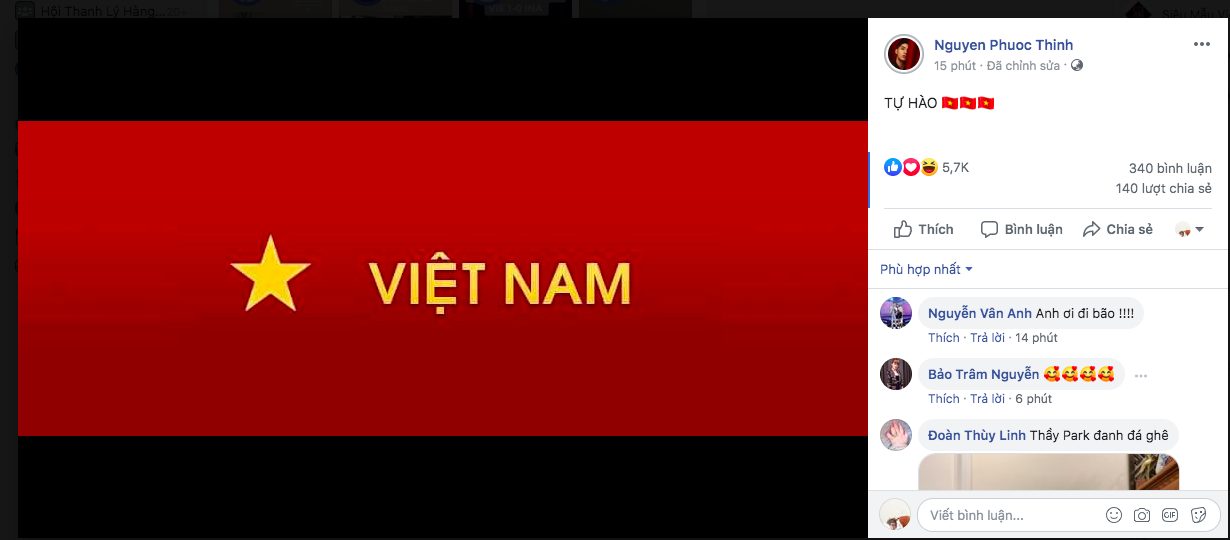 Noo Phước Thịnh không quên đổi ảnh bìa cùng lời tự hào dành cho các chàng trai đội tuyển bóng đá U22 Việt Nam.
