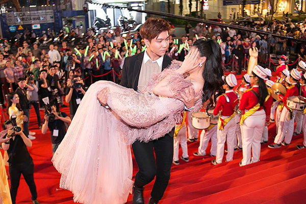 Thậm chí, thảm đỏ thì Tim không ngần ngại tình tứ với bà xã.