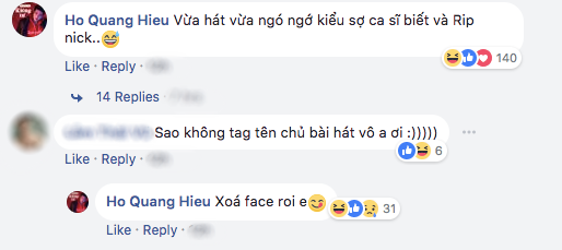 Phía dưới phần bình luận, một tài khoản mạng trêu đùa: “Sao không 'tag' tên chủ bài hát vô anh ơi?”. Phản hồi ý kiến này, Hồ Quang Hiếu tiết lộ cả hai đã huỷ kết bạn trên mạng xã hội, khiến không ít người ngỡ ngàng.