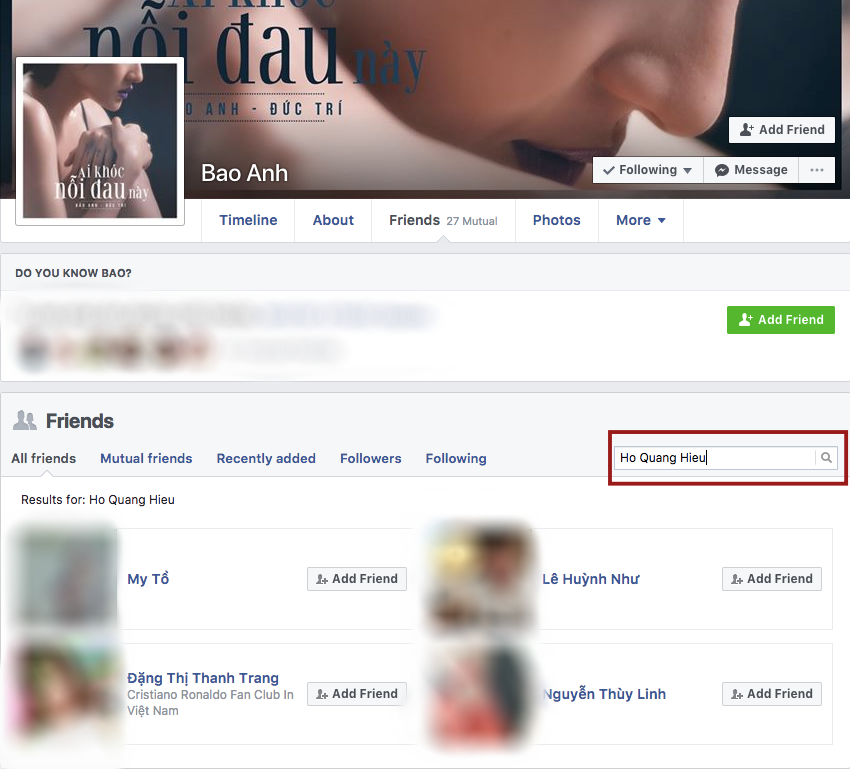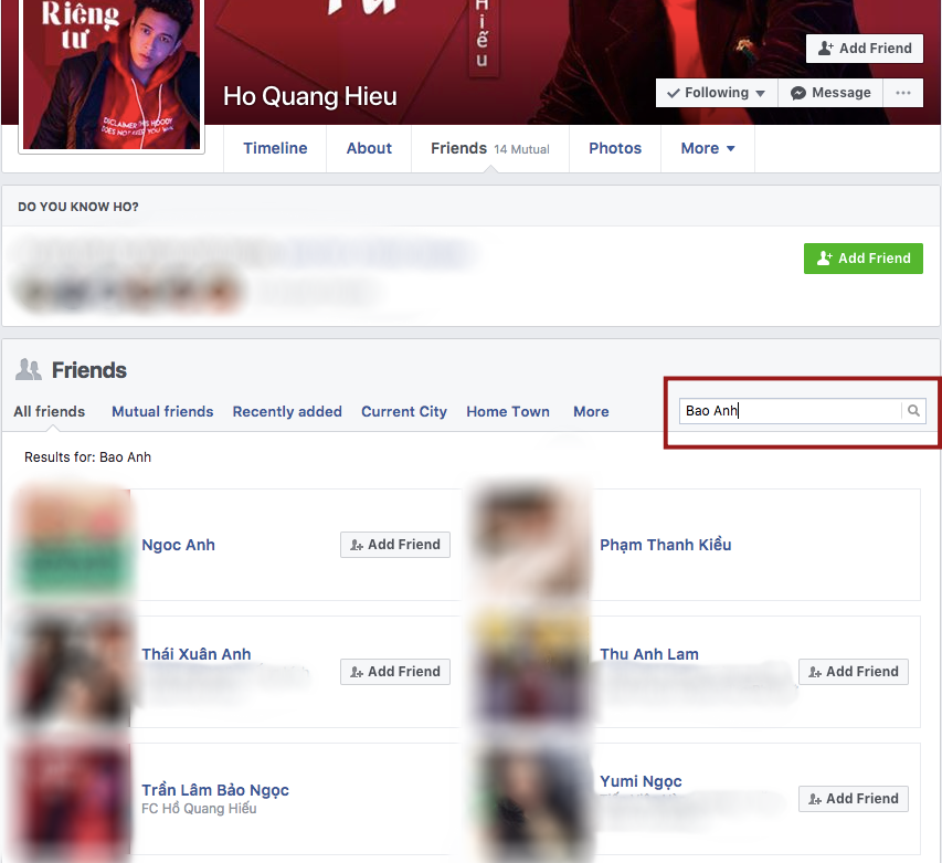 Bảo Anh - Hồ Quang Hiếu không còn kết bạn trên mạng.