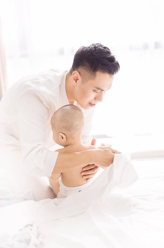- Tôi chỉ nghĩ đơn giản, dù mình là ai thì khi về đến nhà, trách nhiệm và công việc của mình vẫn là người chồng và người cha. Tôi cũng giống như bao ông bố khác thôi. Tôi không giỏi lắm trong việc nấu ăn, giặt giũ nhưng những việc cơ bản như cho em bé uống sữa, thay tã, mặc quần áo, chơi với em bé, cho bé ngủ thì tôi rất tự tin và thuần thục. Vì thế, tôi nghĩ mình phần nào chia sẻ được gánh nặng trong việc chăm sóc con với bà xã.