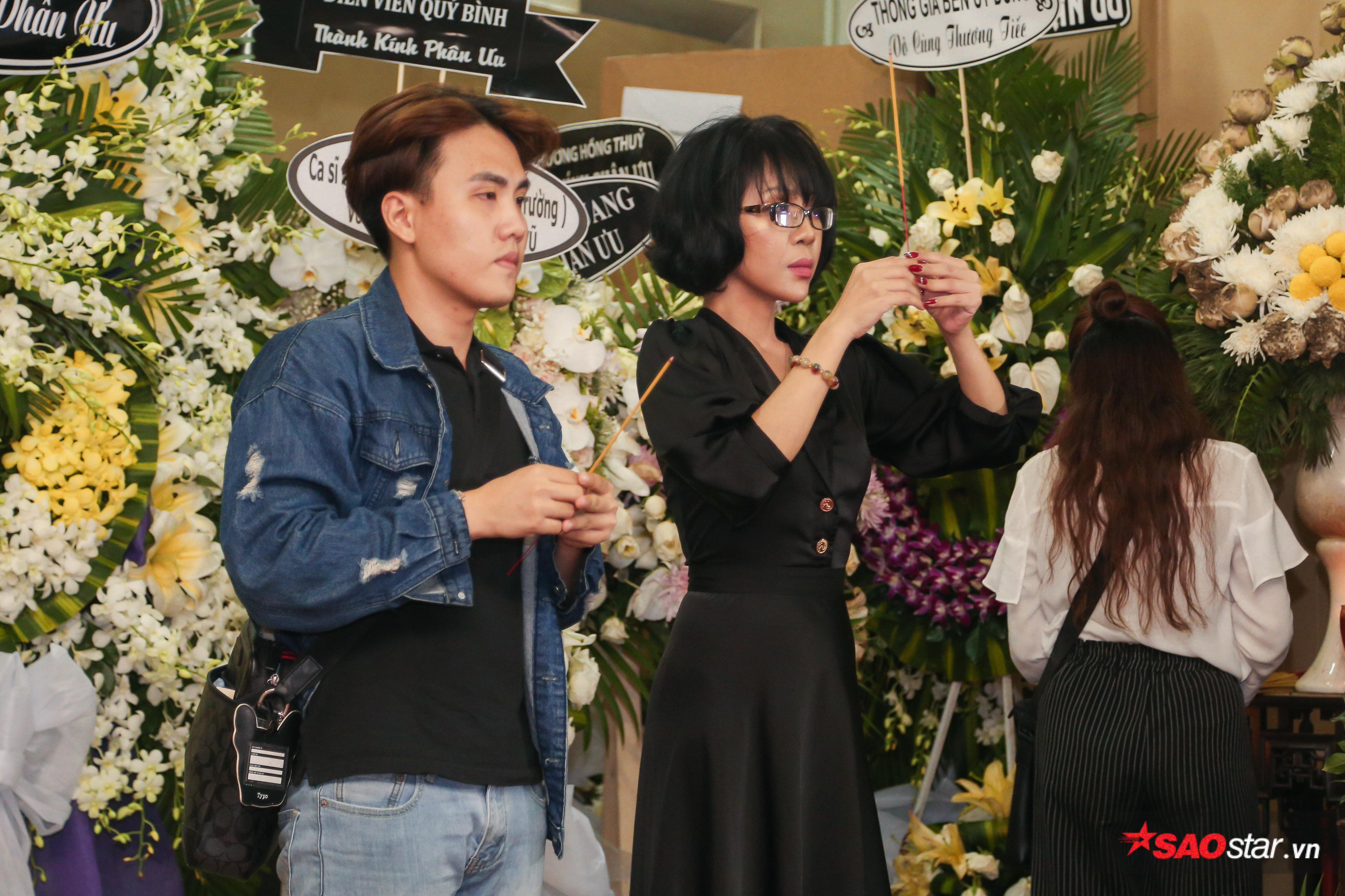 Dù bận rộn nhưng hầu hết các ngôi sao trong showbiz Việt vẫn cố gắng thu xếp, tạm gác công việc đến và chia buồn cùng gia đình cố diễn viên. Vào lúc nửa đêm đến tờ mờ sáng ngày động quan, các gương mặt nghệ sĩ cuối cùng xuất hiện có Việt Hương, Trác Thúy Miêu, Trường Giang, Hứa Minh Đạt, Lâm Vỹ Dạ và Lương Thế Thành.