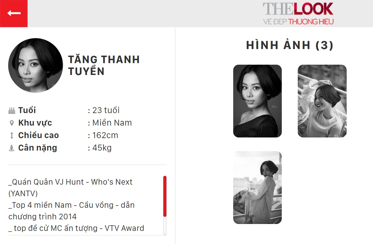 Profile dự thi của Tuyền Tăng tại The Look - Vẻ đẹp thương hiệu 2017.