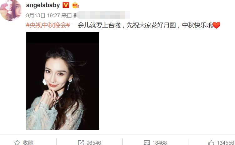 Vào ngày hôm qua, Angelababy cùng Huỳnh Hiểu Minh tham dự đêm hội mừng Trung thu. Tuy nhiên họ lại “đánh lẻ” khi mỗi người kết hợp với nghệ sỹ khác thể hiện ca khúc của mình. Trong khi đó, những cặp vợ chồng khác như Vương Tổ Lam - Lý Á Nam, Bao Bối Nhĩ - Bao Văn Tịnh lại xuất hiện cùng nhau nhân một ngày đoàn viên đặc biệt như vậy.