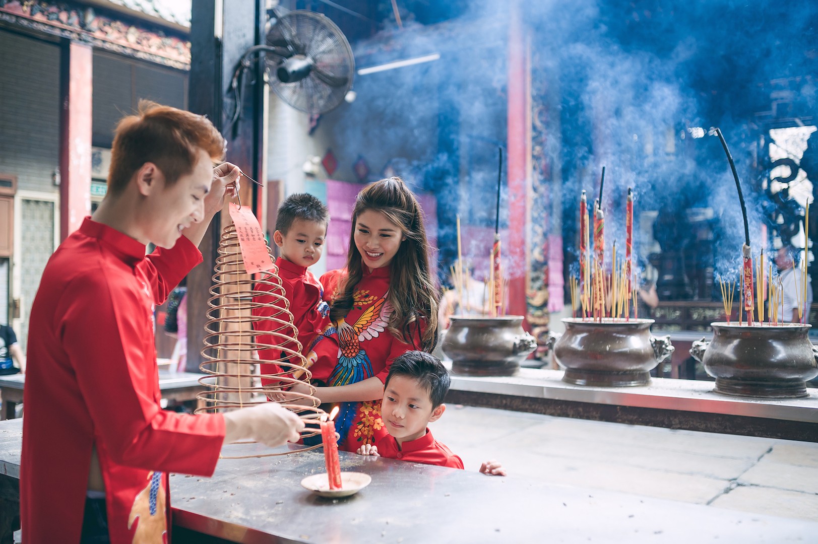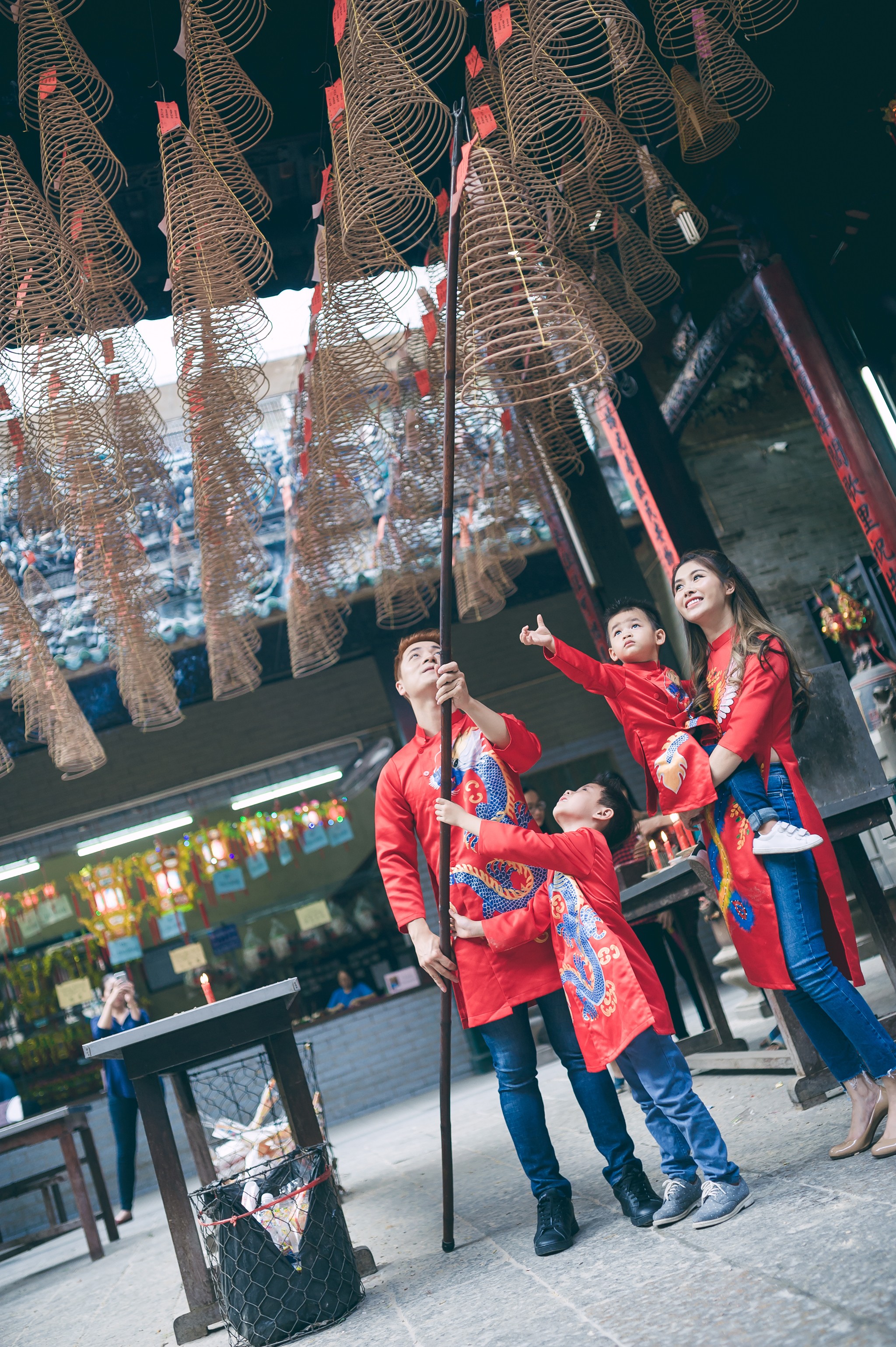 4 thành viên nhà Đăng Khôi rạng rỡ đi chùa đầu năm.