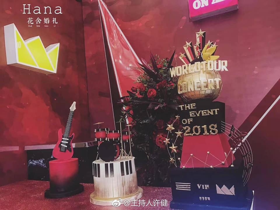 Với chủ đề World Tour Concert - The Event 2018, khung cảnh được thiết kế như một sân khấu với cả lightstick vàng, hoa và sắc đỏ đặc trưng như concert thật. Được biết, chủ nhân của tiệc cưới là Fang và Lou. Cả cô dâu chú rể đều là những fan ruột của BigBang.