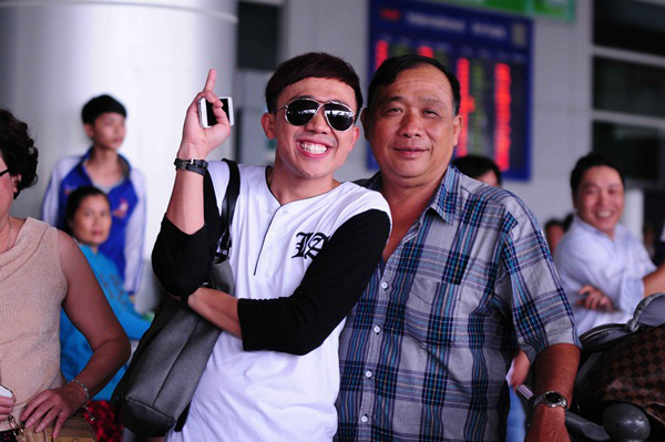 Trấn Thành được bố đón tại sân bay sau chuyến lưu diễn nước ngoài.