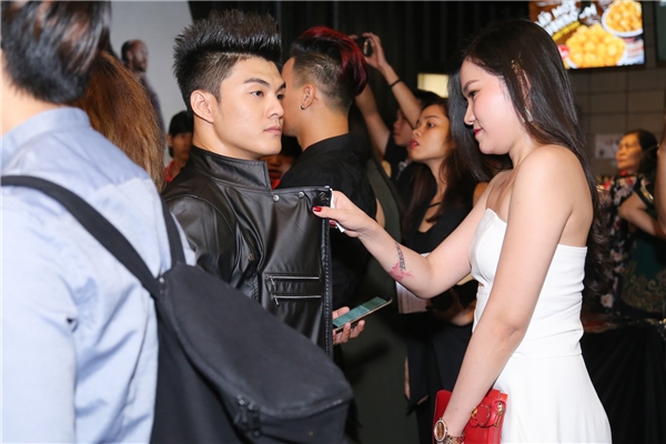 Phía sau hậu trường, Phương Châu chăm sóc Lâm Vinh Hải.