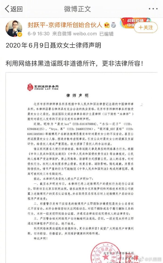 Một số dân mạng Trung đã để lại bình luận sau khi thấy thông báo thanh minh của luật sư như sau: