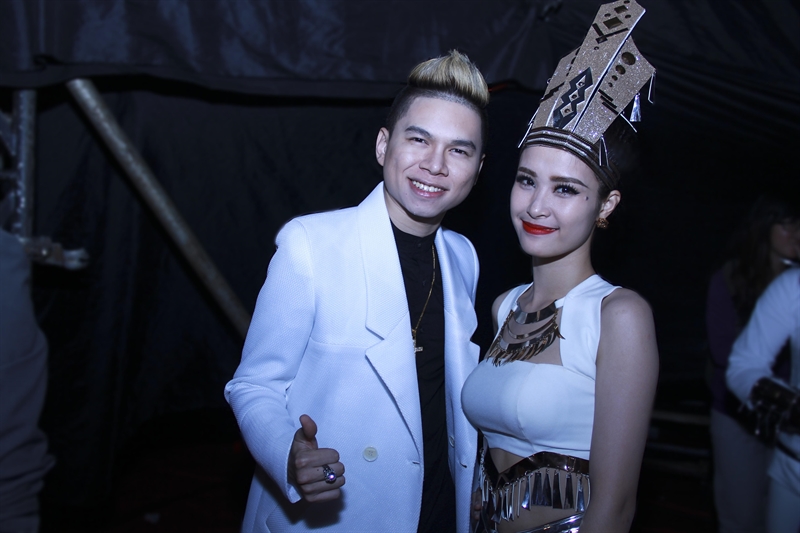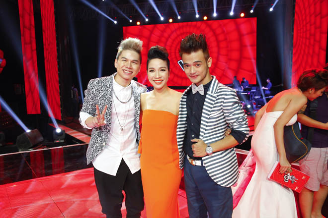 Hoàng Tôn nổi bật cùng HLV Mỹ Linh tại Giọng hát Việt 2013.