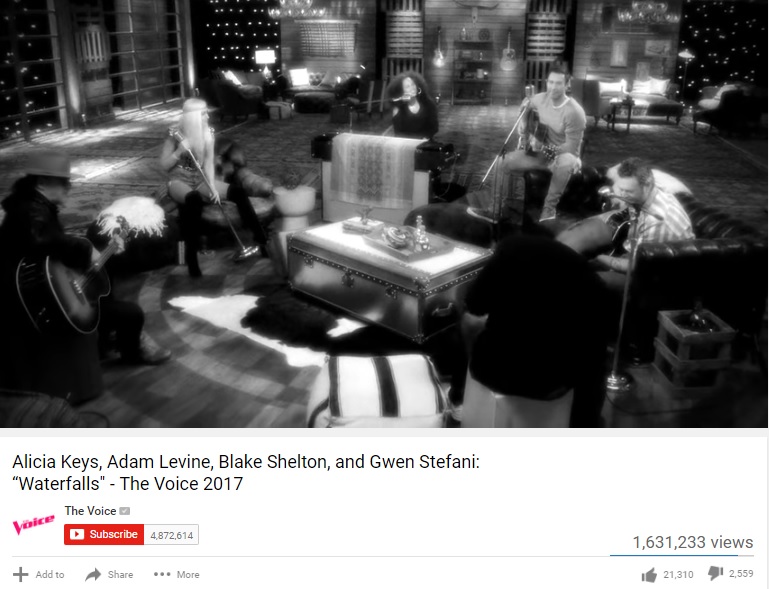 Trước khi bắt đầu tập đầu tiên của mùa thứ 12 thì mới đây cả 4 vị huấn luyện viên Alicia Keys, Blake Shelton, Gwen Stefani, và Adam Levine đã cùng nhau thể hiện lại ca khúc Waterfalls, bài hát đình đám của năm 1994, theo phong cách acoustic.