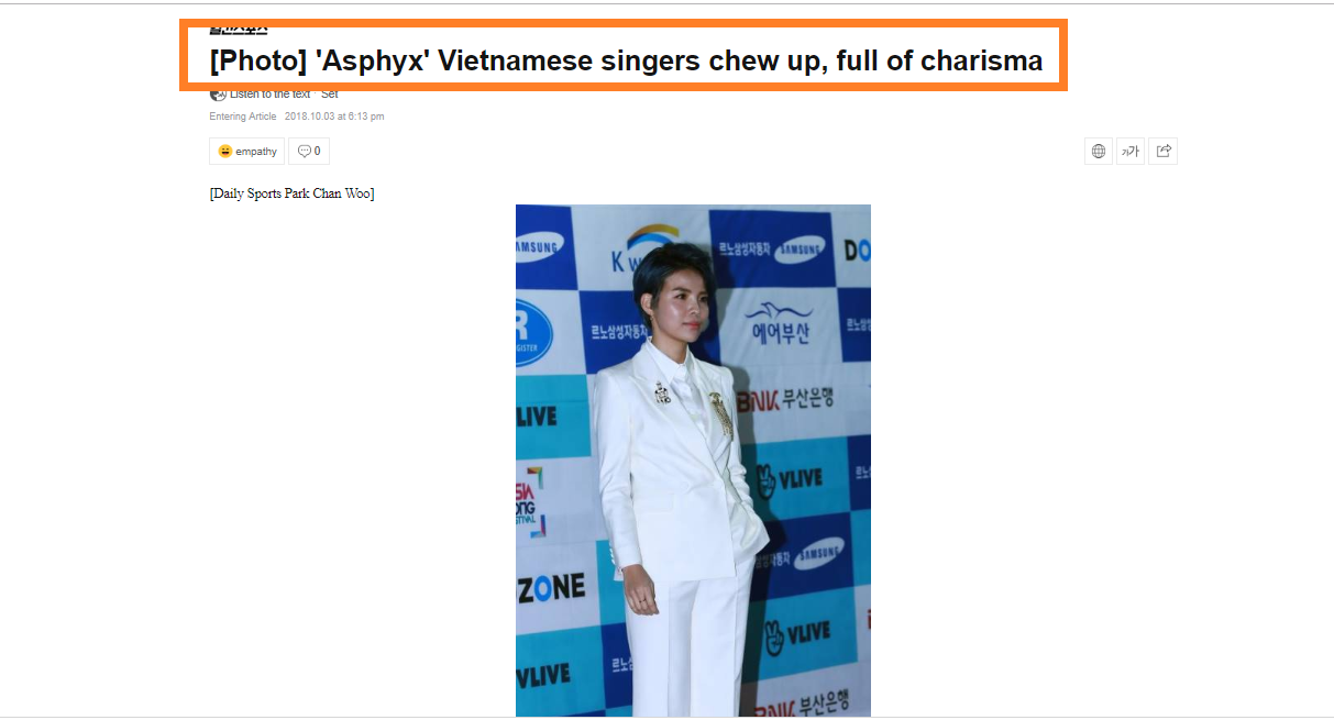 So với những nữ nghệ sĩ khác, Vũ Cát Tường với vẻ mạnh mẽ cùng phong cách tomboy đã thu hút sự chú ý của báo chí Hàn Quốc, khi những nghệ sĩ từ nước khác không được chụp qúa nhiều ảnh thì Vũ Cát Tường dường như được ưu ái hơn. Bộ ảnh được tung ra không khác gì ảnh được chụp cho những nghệ sĩ chủ nhà thậm chí có phần đẹp hơn và không quá dìm nhan sắc của Vũ Cát Tường. Không những thế, tiêu đề của những bức ảnh chụp Vũ Cát Tường sẽ làm bạn phải bật cười vì độ cuồng của photo dành cho Tường.