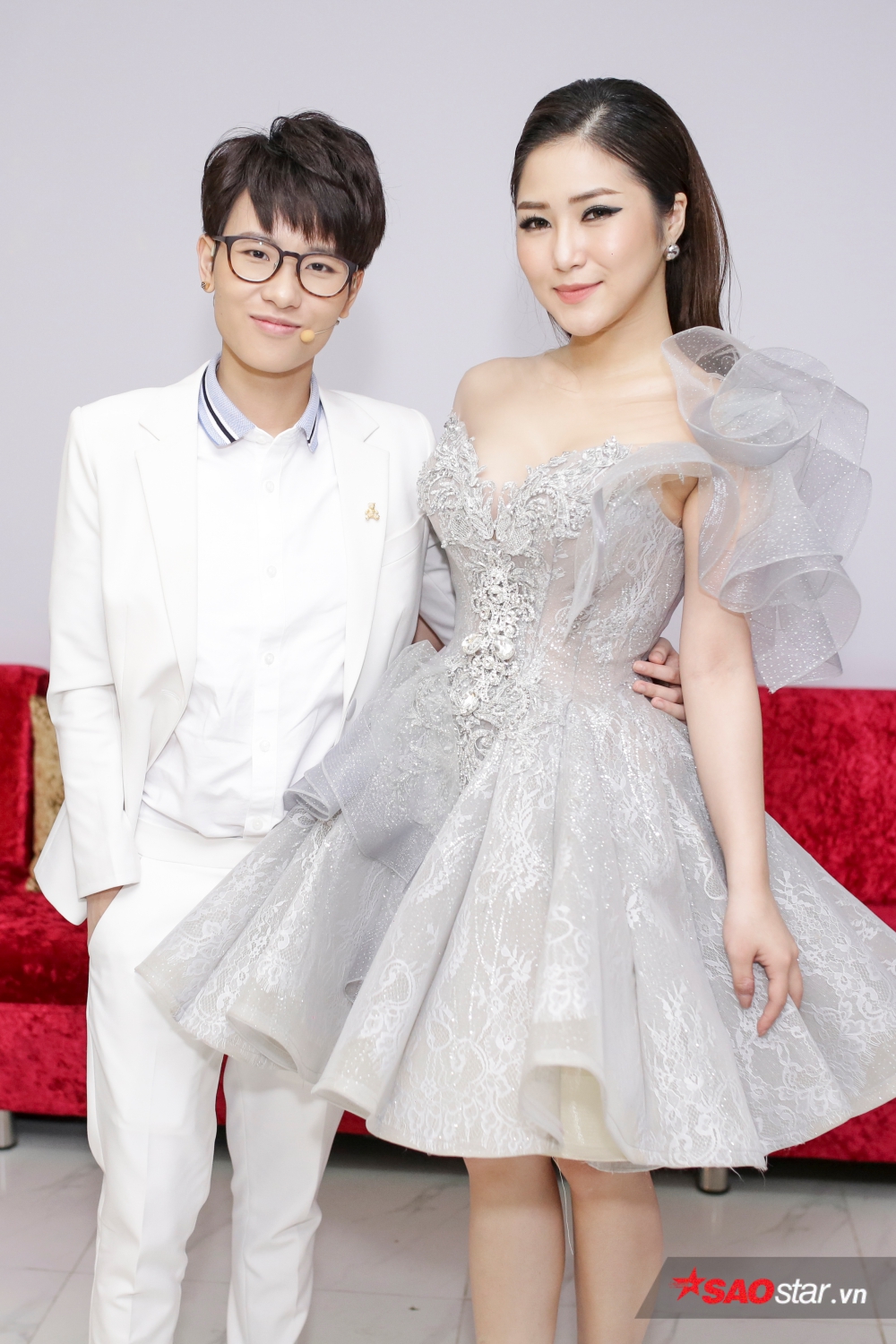 Tiên Cookie lựa chọn bộ suite trắng cho lần ghi hình hôm nay.
