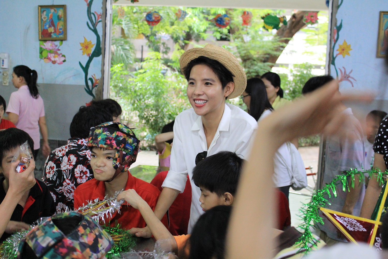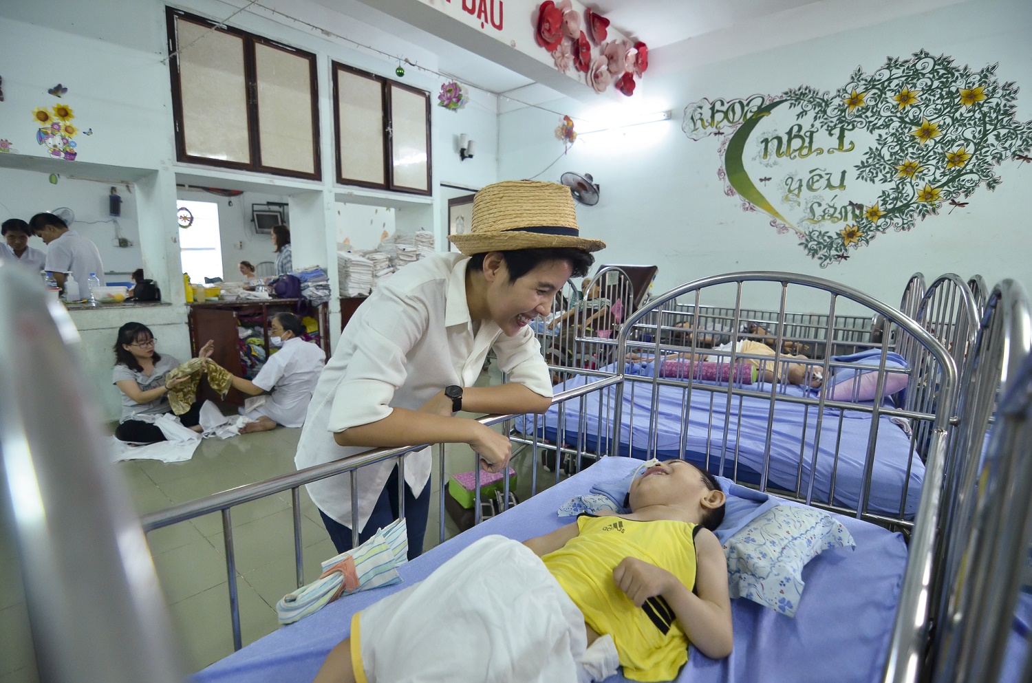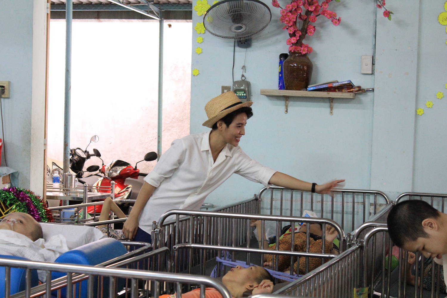 Vũ Cát Tường thăm hỏi các em nhỏ tại Trung tâm bảo trợ trẻ tàn tật mồ côi Thị Nghè.