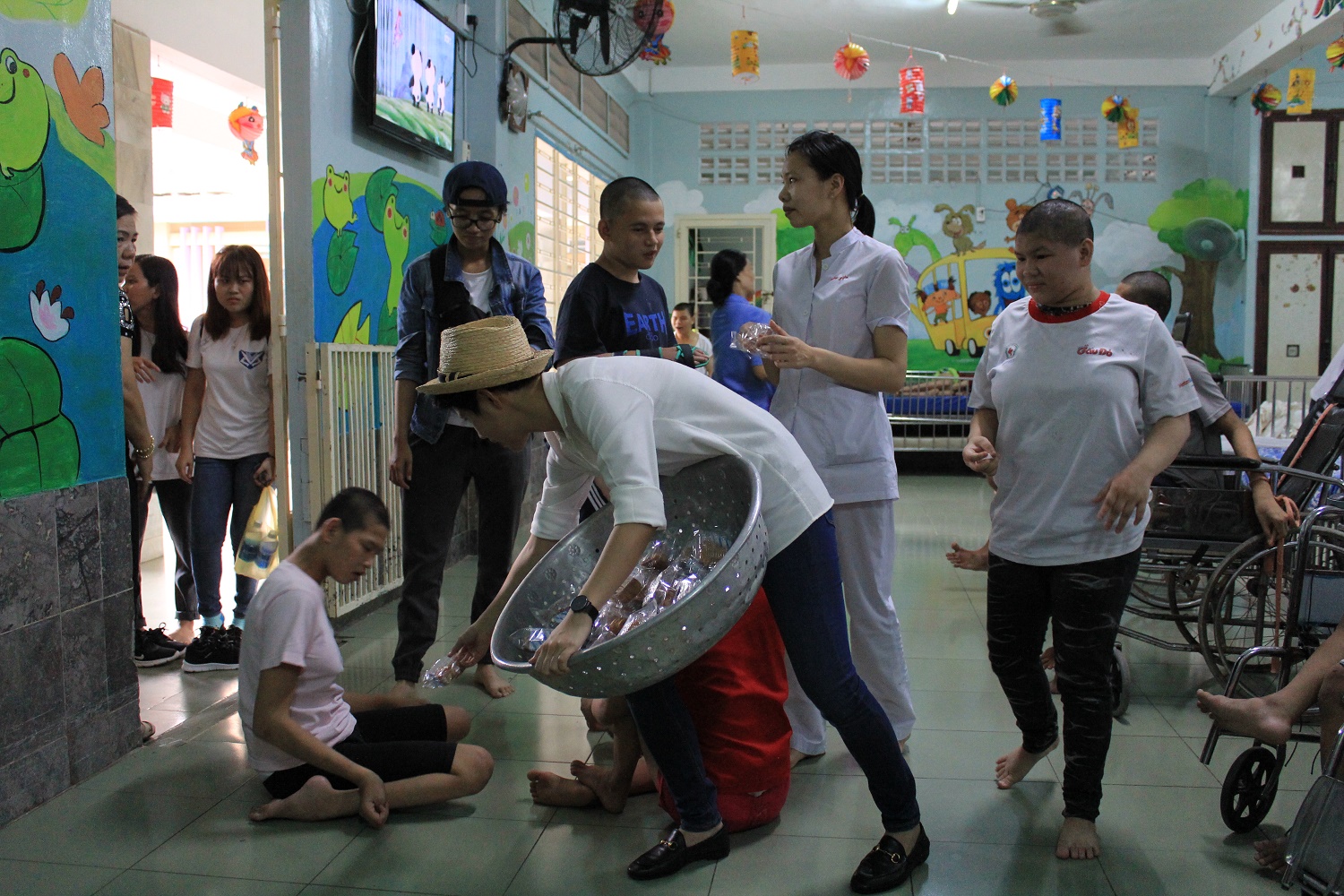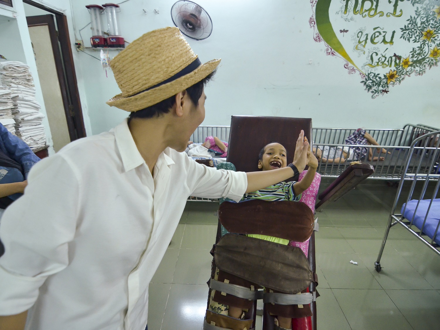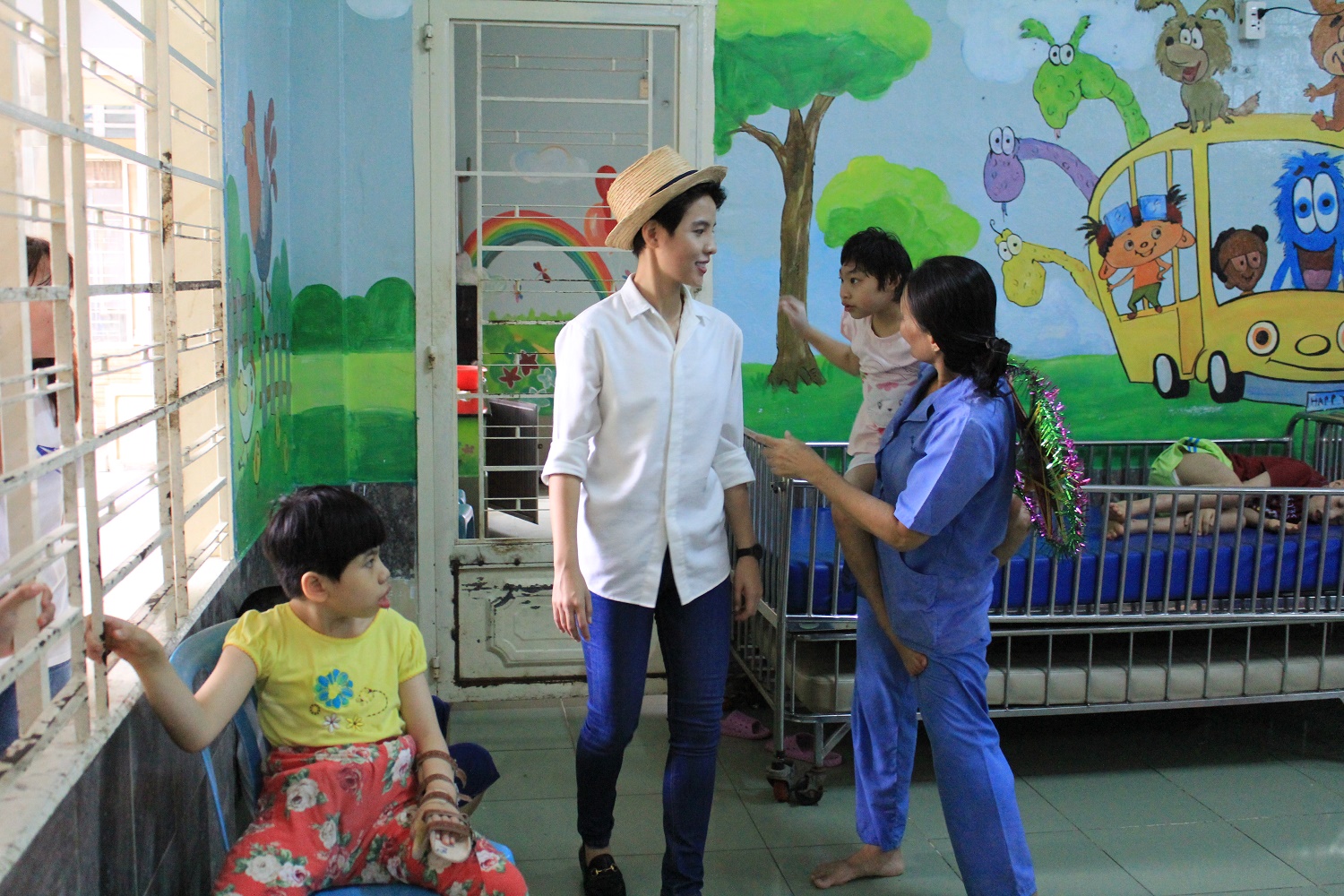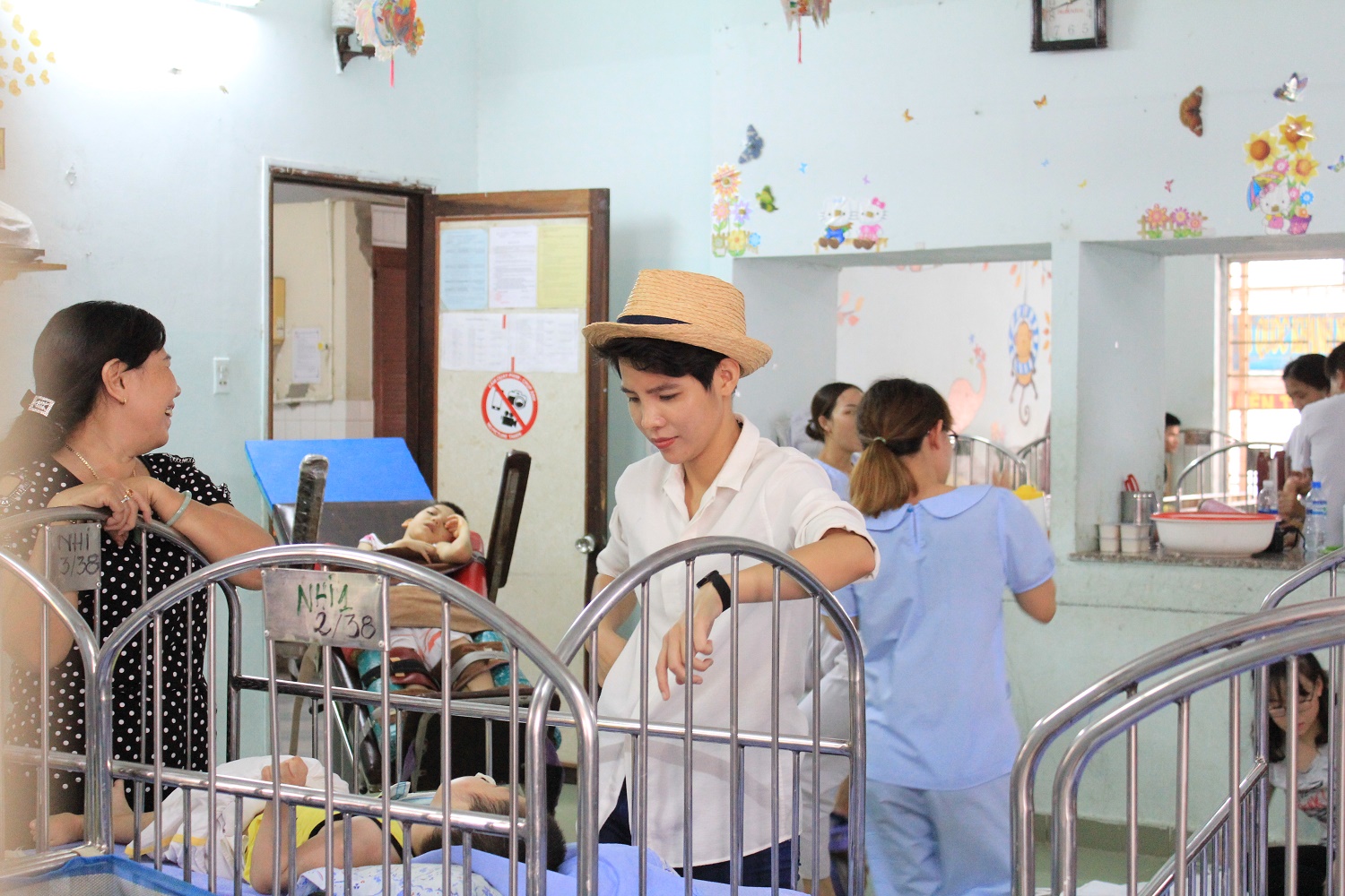 Vũ Cát Tường thăm hỏi các em nhỏ tại Trung tâm bảo trợ trẻ tàn tật mồ côi Thị Nghè.