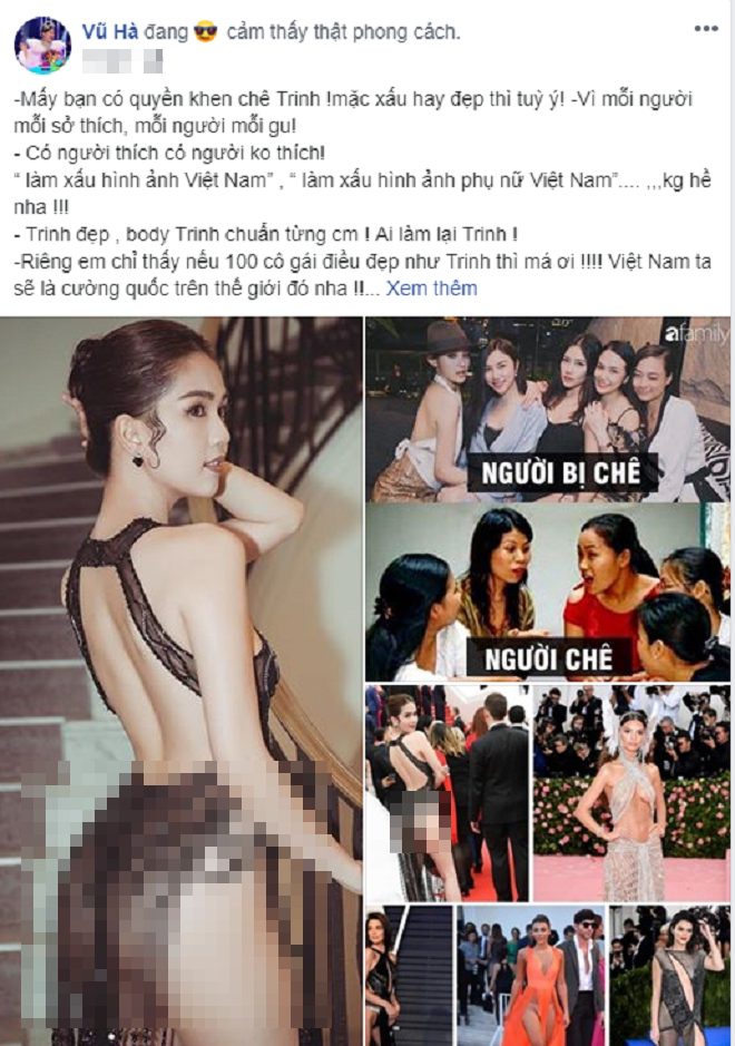 Vũ Hà chia sẻ “Mấy bạn có quyền khen chê Trinh mặc xấu hay đẹp thì tuỳ ý! Vì mỗi người mỗi sở thích, mỗi người mỗi gu!