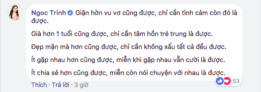 Thế nhưng, điều khiến cư dân mạng chú ý hơn cả là việc ông bầu nổi tiếng vô tình tiết lộ Ngọc Trinh có tình mới. Và đây được cho là nguyên nhân khiến anh và người đẹp ít chia sẻ hơn trước.