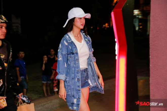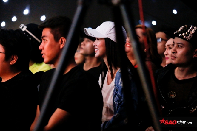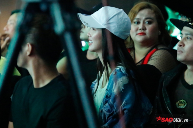 Với trang phục đơn giản, nữ diễn viên phim Quyên gây bất ngờ khi không ngồi hàng V.I.P mà lặng lẽ ở khu vực ghế thường để theo dõi buổi biểu diễn. Cô đã “quẩy” rất sung, hò hét nhiệt tình - nhất là với phần trình diễn của Cường Seven.