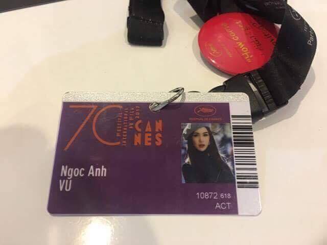 Thẻ đeo có ảnh và tên của Vũ Ngọc Anh tại đêm bế mạc LHP Cannes 2017.
