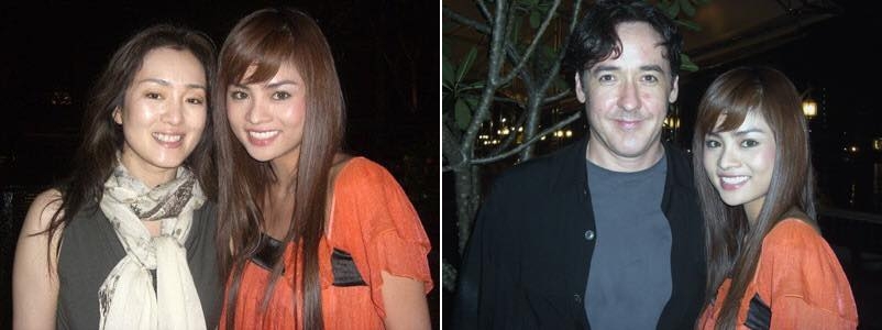 Vũ Thu Phương chụp ảnh cùng Củng Lợi, John Cusack khi đóng phim Shanghai.