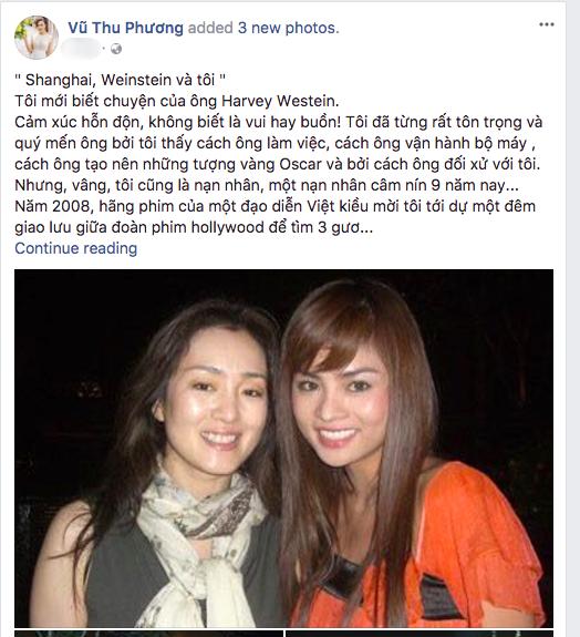 Giữa lúc vụ bê bối còn chưa lắng xuống, mới đây, cư dân mạng Việt tiếp tục ngỡ ngàng khi Vũ Thu Phương lên tiếng tiết lộ cũng là là nạn nhân của Weinstein. Vụ việc ám ảnh cô suốt 9 năm trời, đồng thời là lý do gián tiếp khiến nữ diễn viên Khát vọng thượng lưu bị dư luận mỉa mai về việc sang Hollywood đóng phim nhưng chỉ đổi lại vài giây ít ỏi xuất hiện trên màn ảnh.