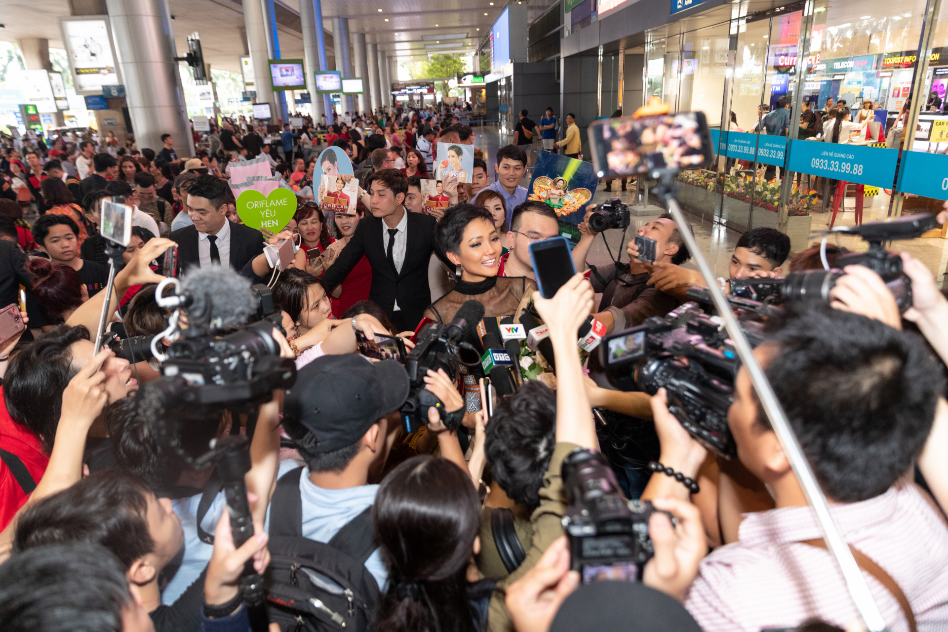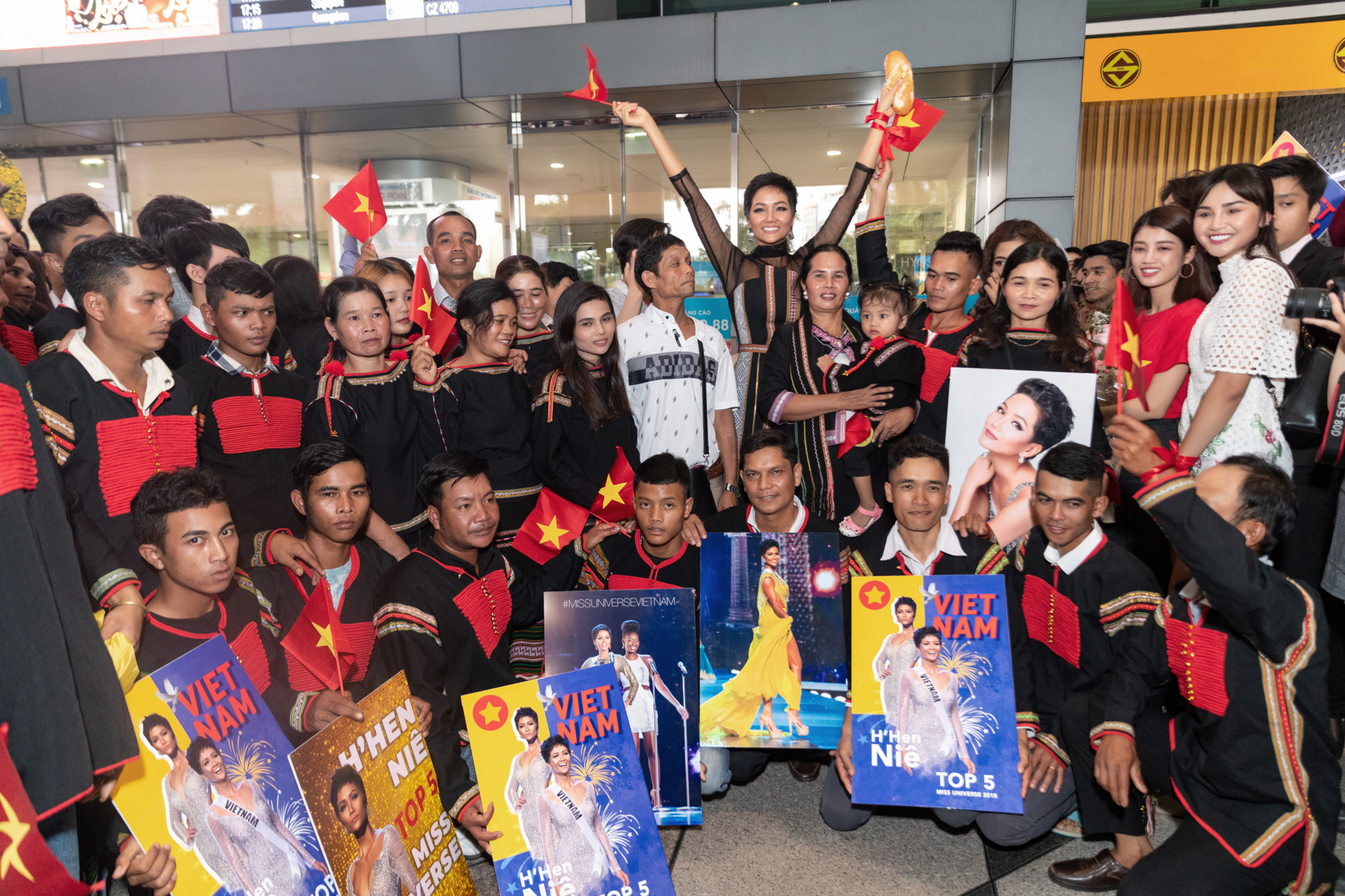 Có mặt tại sân bay đón hoa hậu H’Hen Niê trở về Việt Nam, ngoài khán giả, truyền thông trong nước còn có 30 người nhà của cô từ Đắk Lắk bắt xe xuống TP.HCM để chào đón.