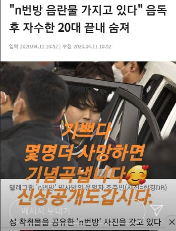 Cụ thể, Verbal Jint đã đăng tải bức ảnh chụp màn hình của một bài báo trên story ở Instagram. Bài báo này để hình Jo Joo Bin - thủ phạm đầu tiên của phòng chat thứ N cũng như phòng chat Tiến sĩ. Nội dung của nó nói về một người đàn ông ở độ tuổi 20 thú nhận mình là hội viên tham gia Phòng chat thứ N, đã tự sát. Được biết A (28 tuổi) đã đến sở cảnh sát Yeosu để đầu thú rằng mình đang sở hữu hình ảnh bất hợp pháp được lấy từ Phòng chat thứ N. Theo đó, cảnh sát đã thấy 340 bức ảnh bao gồm nội dung khiêu d.âm trẻ em trong điện thoại của anh ta. Sau đó, A được tìm thấy đã chết trong căn hộ của mình vào lúc 8 giờ tối (KST) ngày 10/04 vừa qua.