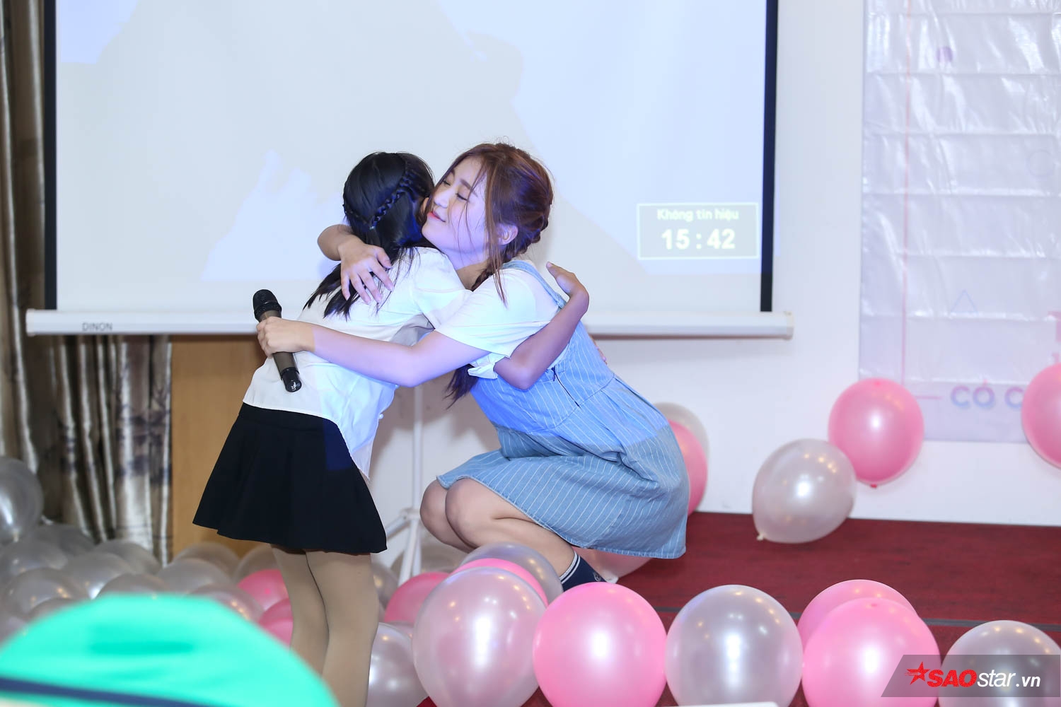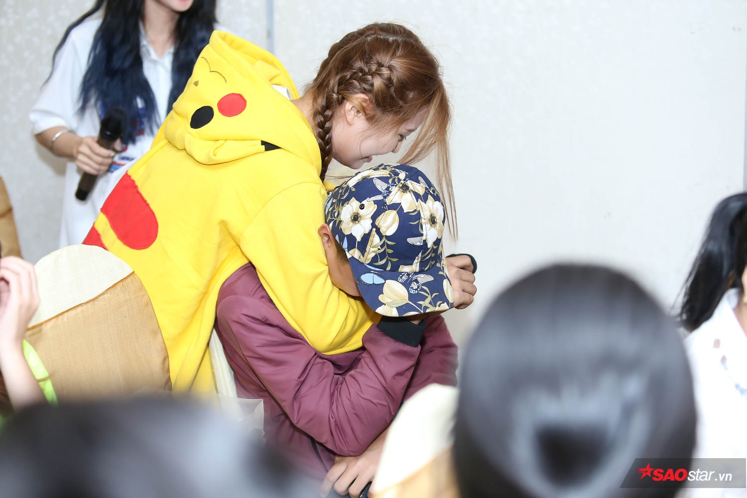 Cảm kích vì tình cảm của người hâm mộ, Sara tiến đến vị trí ngồi của fan nam và ôm chầm lấy cậu ấy khiến cậu xúc động.