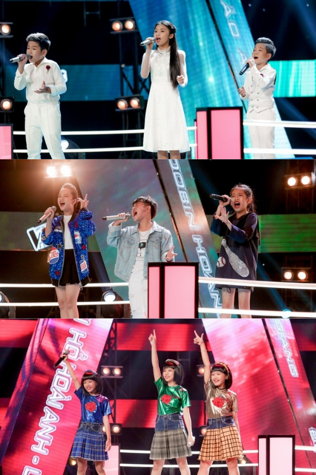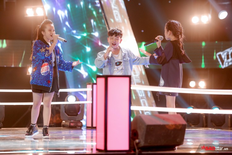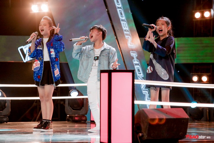 Tuy vậy, Anh Thư, Anh Tuấn và Xuân Phương đã không khiến 2 huấn luyện viên Soobin - Vũ Cát Tường thất vọng khi ngay từ câu hát đầu tiên cất lên, bộ ba đã khiến sân khấu vòng Đối đầu rộn ràng đến mức như “chao đảo”. Không cần vũ đạo dàn dựng bài bản, 3 thí sinh nhí nhún nhảy, khuấy động khán giả và ngay lập tức “hạ gục” cả 5 huấn luyện viên trên ghế nóng.