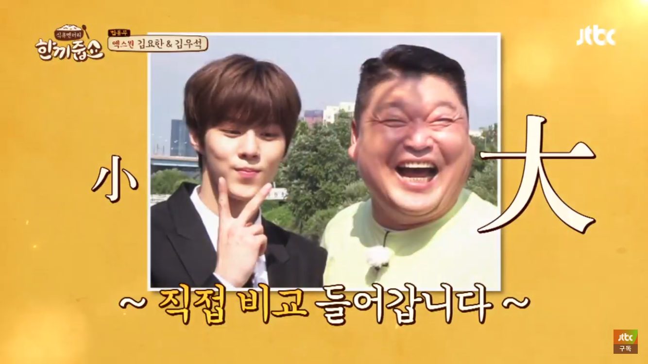 Lee Kyung Kyu nói rằng gương mặt Kim Woo Seok nhân với 4 sẽ ra kích cỡ gương mặt của Kang Ho Dong. Do đó, cả hai đã đứng chung một khung hình và tạo dáng với máy quay.