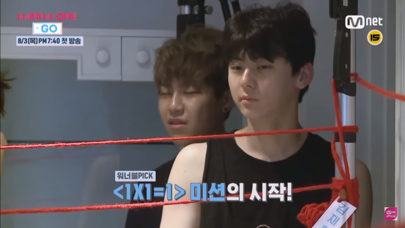 Kim Jae Hwan là thành viên đầu tiên xuất hiện với bộ mặt ngẩn ngơ.