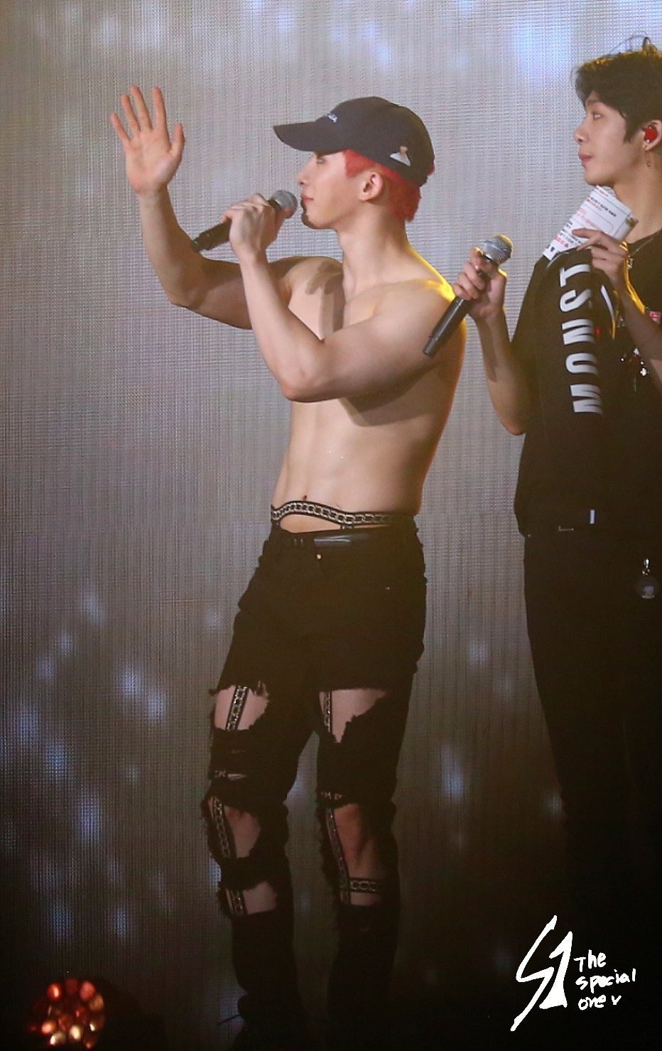 Hàng triệu người hâm mộ không khỏi lúng túng khi chứng kiến trang phục diễn vô cùng gợi cảm và mát mẻ mà WonHo đang mặc trên người. Thú vị hơn khi anh còn trực tiếp để lộ phần trên hết sức mát mẻ và táo bạo khiến nhiều fangirl đứng ngồi không yên vì được “tận mục sở thị” thân hình cơ bắp cuồn cuộn, nước da trắng hồng, mịn trơn khó ai có thể kiềm lòng lại được mỗi lúc ngắm nhìn qua.