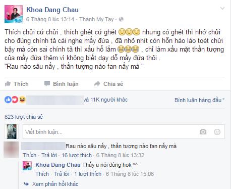 Fan của Vũ Cát Tường đã chỉ trích và dành cho Châu Đăng Khoa những lời lẽ khá gay gắt.