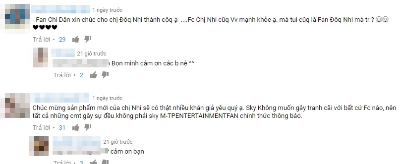 Một sky - fan của Sơn Tùng vui vẻ chúc mừng Đông Nhi.