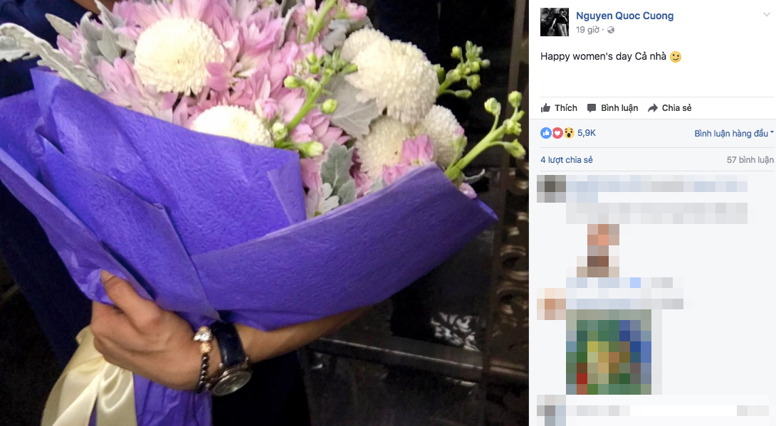 Bó hoa giống hệt vậy được Cường Đô la chia sẻ lên Facebook cá nhân ngày 8/3.