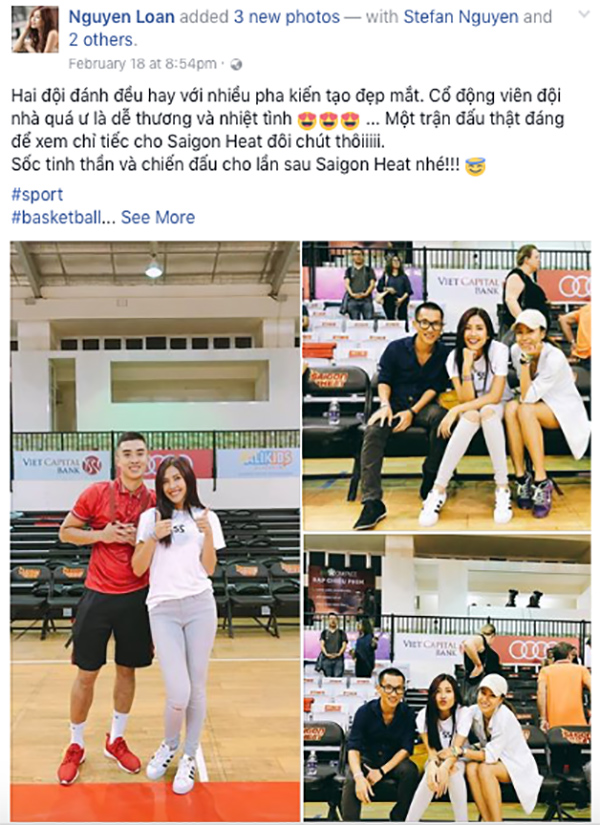 Không ít lần khán giả bắt gặp Nguyễn Thị Loan ngồi ở hàng ghế VIP mỗi khi Saigon Heat thi đấu, cô cổ vũ hết mình cho bạn trai. Thậm chí, trên Facebook cá nhân, Nguyễn Thị Loan cũng thường xuyên chia sẻ tình yêu về môn bóng rổ.
