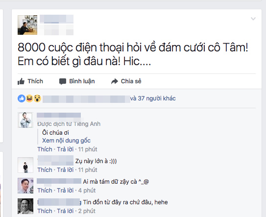 Hai nhà báo kỳ cựu thuộc mảng Văn hóa - Nghệ thuật cũng úp mở thông tin đám cưới Mỹ Tâm.